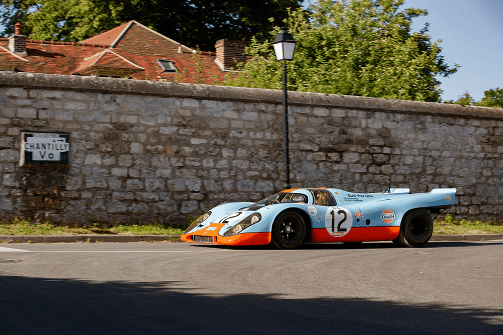 Peter Auto is best known for staging historic racing meetings and the Tour Auto retrospective. Taking a page from the latter, the activities for the Chantilly Arts & Elegance kicked off with a 100km rally through a local national park with a lunch stop in a nearby chateau. All entrants were invited to join, and despite the scorching conditions, around three dozen cars lined up for the rally. Among them was the most unlikely of machines to take on public roads: a Gulf liveried Porsche 917 K. It was entered as part of the 50th anniversary celebrations of the 917 and this particular car has already been successfully raced in Europe during this season. The owner reported that the speed bumps were hardly an issue and that the engine did not run hotter than 85º centigrade despite the record breaking outside temperatures. Along with most other participants, the 917 completed the rally without a hitch.