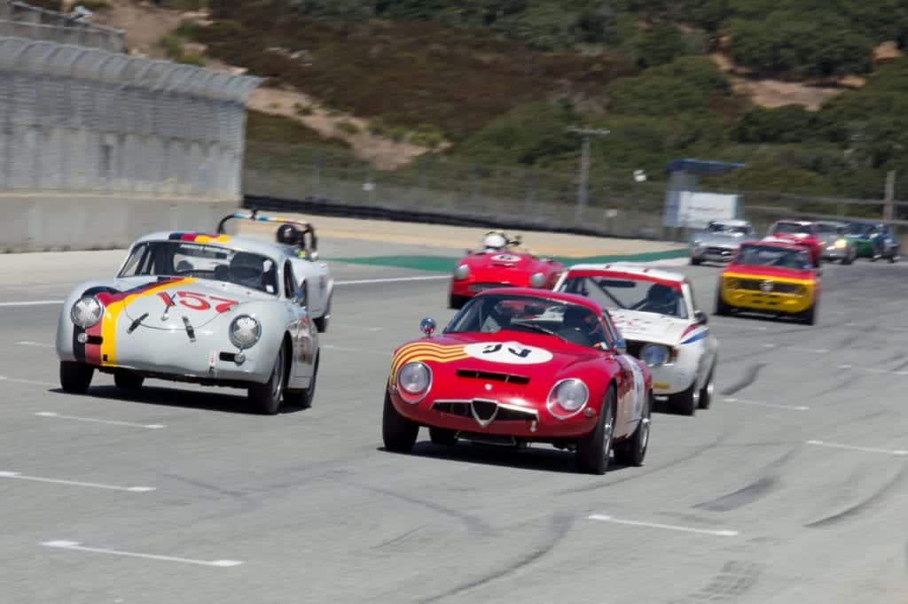 A gaggle of cars entering turn ten in the 1955-1964 GT class.
